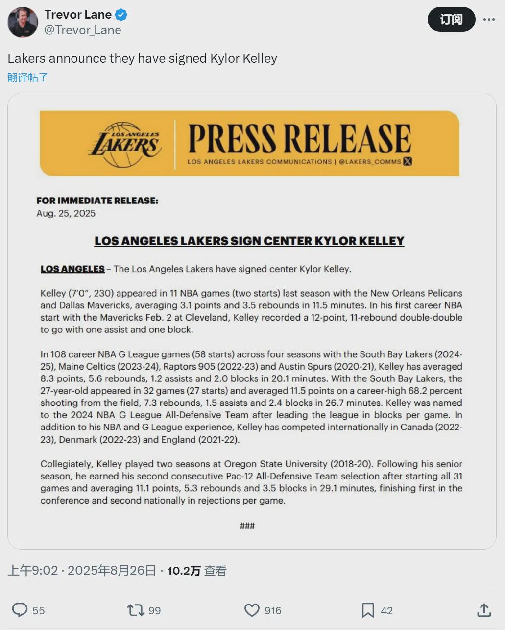凯勒-凯利是传统类型的大中锋,没有外线投射能力。而且他已经28岁,很难继续提升自己。湖人阵中目前已有三个中锋:艾顿、海斯和科洛科溢诚优配,其中科洛科是双向合同。如果凯勒-凯利在湖人训练营表现出色,有可能会挤掉科洛科!